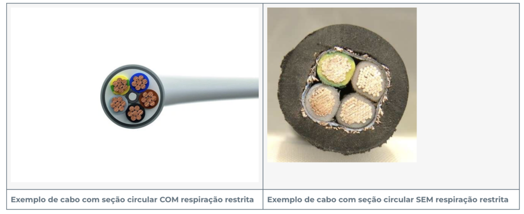 Figuras 2 e 3  – Cabos com respiração restrita e sem respiração restrita.